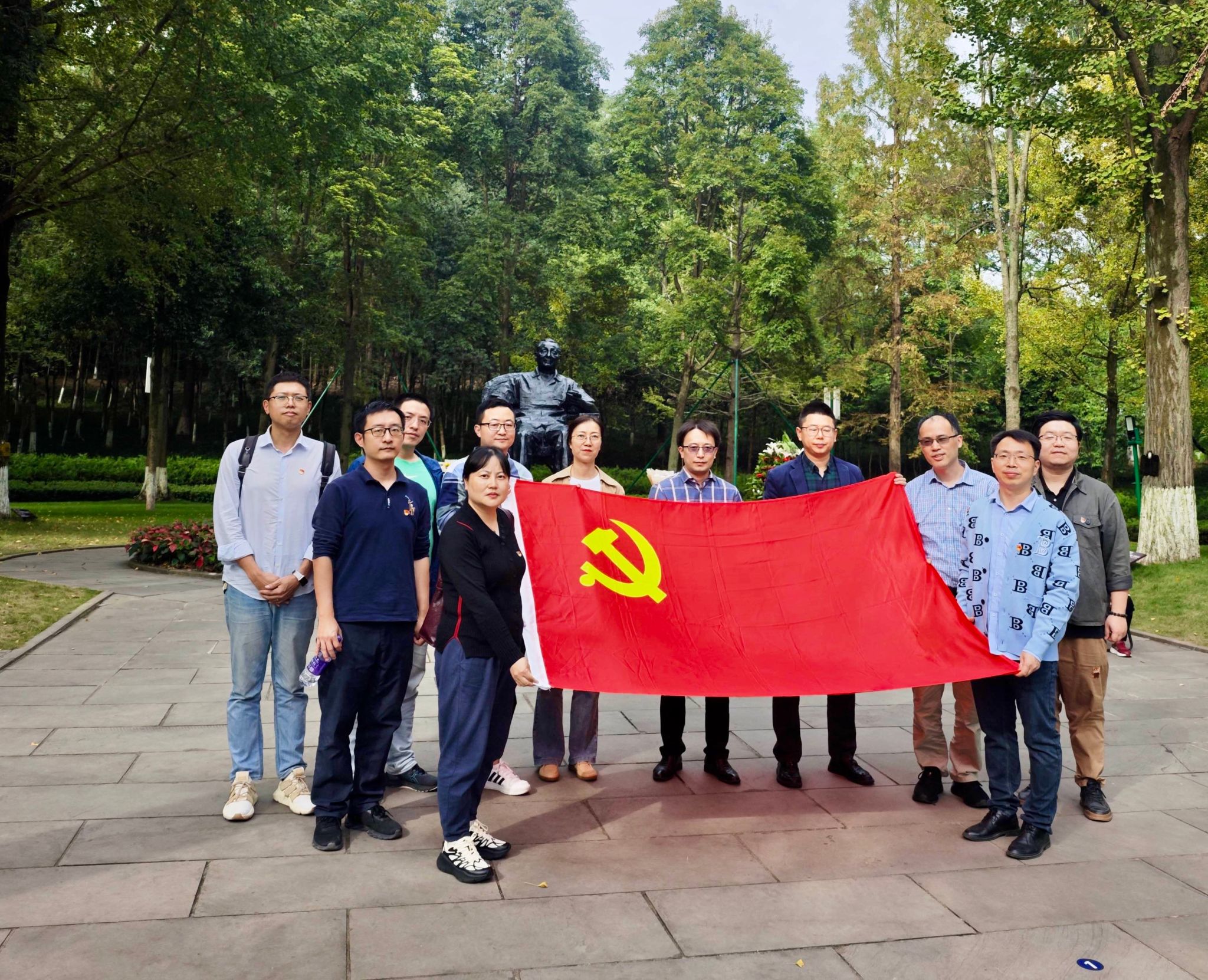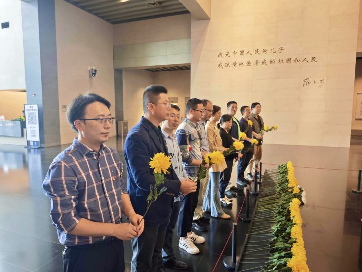 在庄严肃穆的邓小平铜像广场前,支部书记王慧维和张伟带领同志们向邓小平同志铜像鞠躬致敬、敬献花束,缅怀邓小平同志的丰功伟绩。大家高举右拳,共同重温入党誓词,在铿锵有力的誓言中,大家进一步牢记立德树人初心、勇担为党育人、为国育才使命,以教育家精神不断激励奋进。
