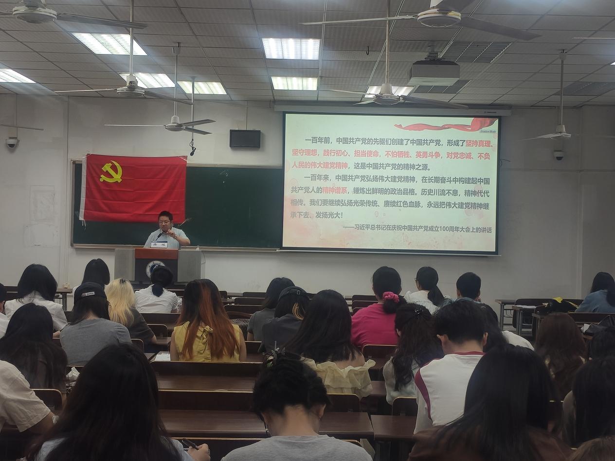 5月29日上午,马克思主义学院副院长唐斌教授以《坚定理想信念 传承精神力量——学习践行中国共产党奋斗历程中的精神力量》为题,带来一堂生动的党性教育课,帮助毕业生党员始终拧紧世界观、人生观、价值观这个“总开关”,永葆共产党员的政治本色。