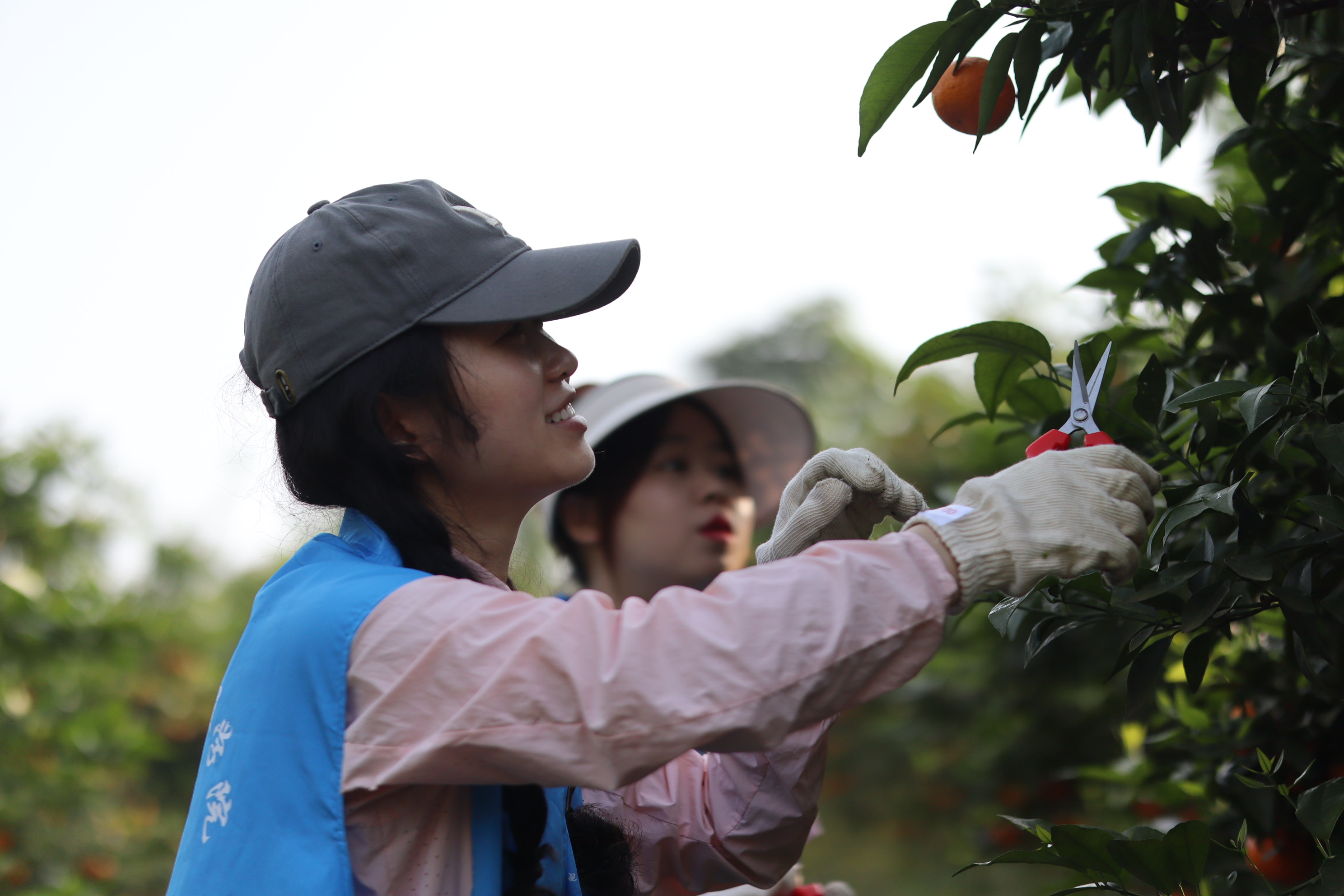 活动开始之初,“橙心耘”沃柑负责人向同学们介绍了沃柑的采摘流程、采摘方式和采摘注意事项,分发了剪子、背篓、手套等采摘工具。接着,带队同学将志愿服务队分成了三组,每组7-8人负责不同片区的采摘工作。从挑选果子到剪下果子,从放置果子到清点果子,同学们认真仔细,互帮互助。接着,在合作社工作人员的带领下,对沃柑种植区域内的杂草进行铲除和清理,并对杂草进行统一回收处理,做到不留垃圾提升园区环境卫生。最后,同学们席地而坐结合今天的志愿服务活动谈感想,说体会。