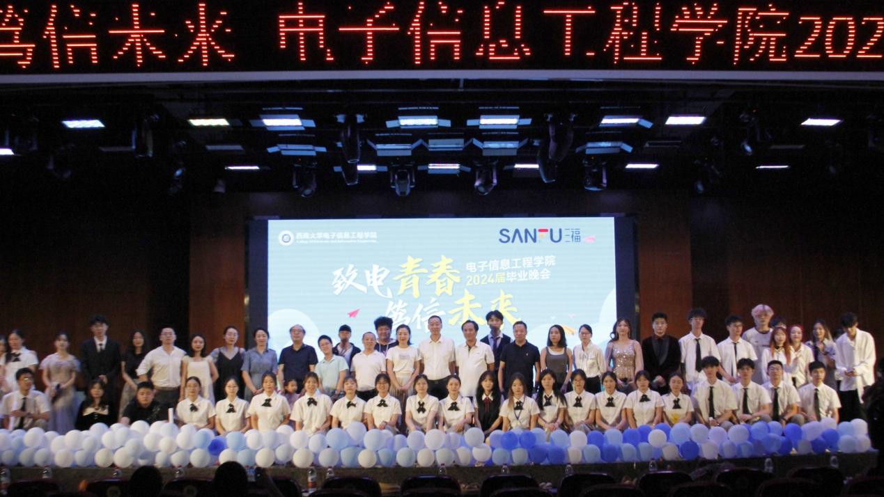 5月24日,学院“致电青春,笃信未来”2024届毕业晚会在南区活动中心107顺利举行。学院党委书记熊海灵、学院党委副书记、纪委书记谢俪、通信工程系主任贺付亮、实验中心主任刘东卓、实验中心副主任周颖华、教学办主任高渤、办公室主任何沐曦、团委书记余琼、2020级本科生辅导员刘杨妮,2021级本科生辅导员周彦伶、2022级本科生辅导员王越、行政秘书许家歌、科研秘书贾蕾及学院师生等300余人观看了晚会。