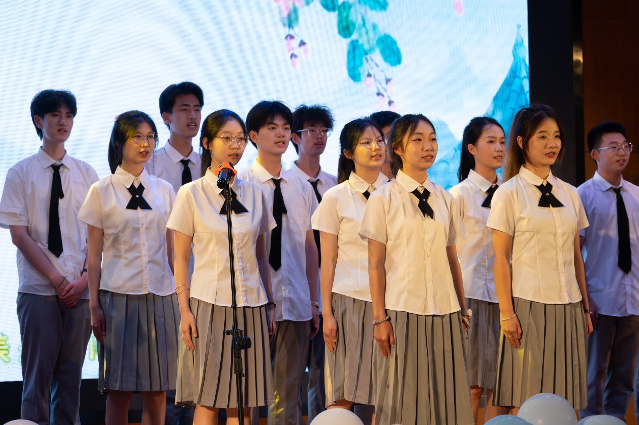 晚会在学院学生合唱团带来的院歌《飞翔》、合唱《上春山》中拉开帷幕。“继往开来,一路行健自强;含弘光大,胸怀民族梦想。”歌声铿锵有力却又不失宛转悠扬,象征着我们不仅有着工科学子昂扬拼搏精神,也有着独属于我们青春岁月的意气风发。
