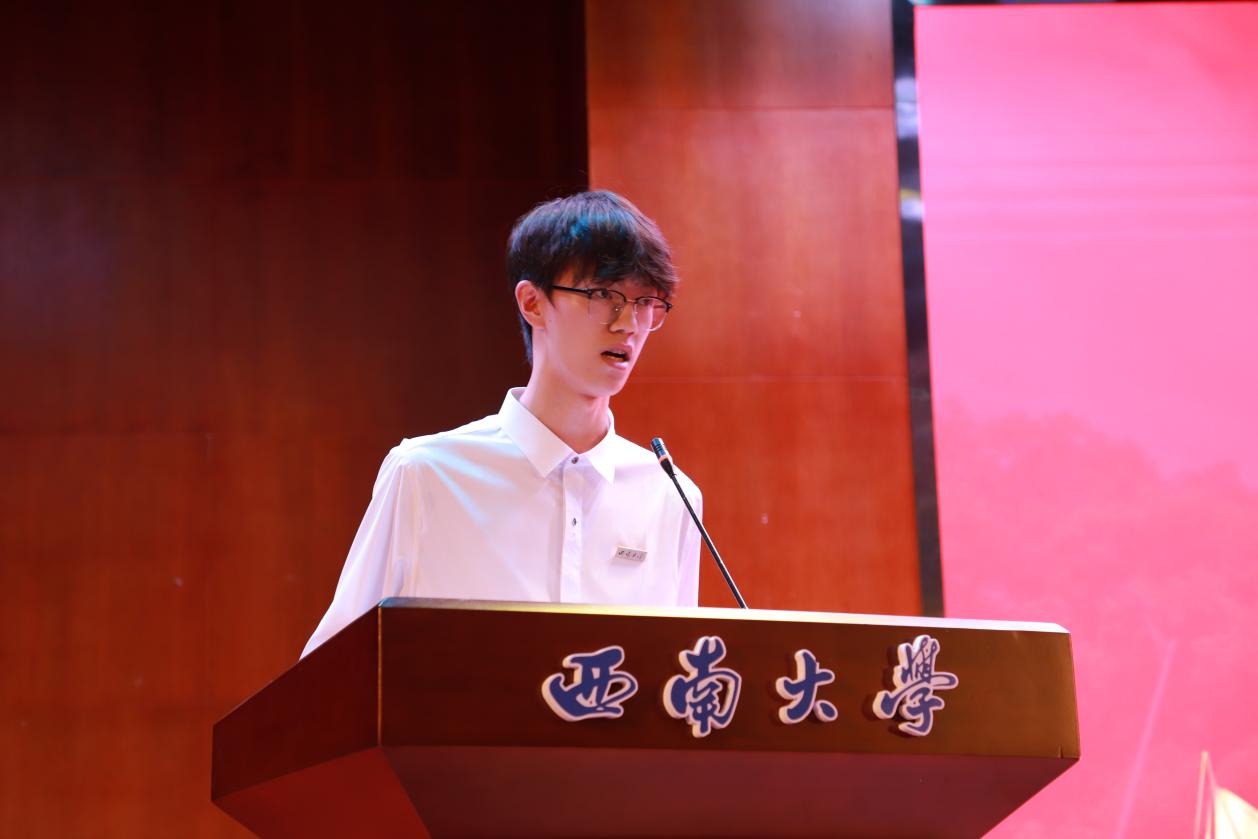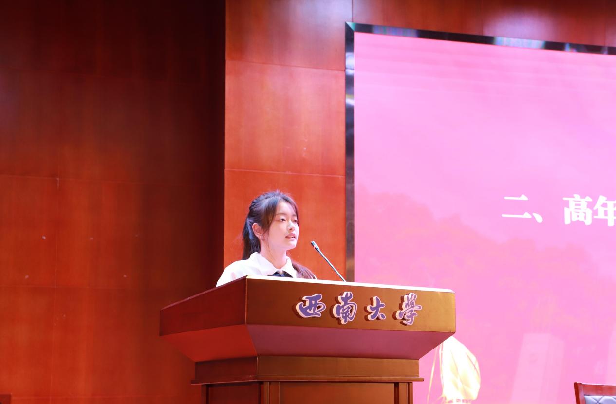 高年级本科生代表2021级通信工程专业王梦茹结合自己大学的成长经验,以“电路元件、调试检验、迭代升级”三个关键词比拟课堂、竞赛、实践等学习环节,生动形象地为新生在大学中的发展规划树立了方向标。