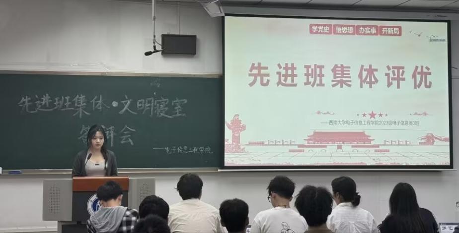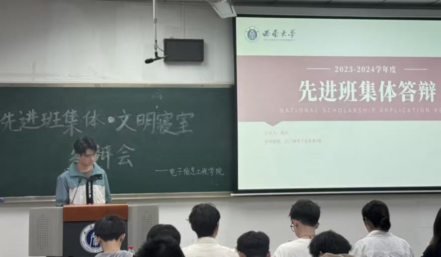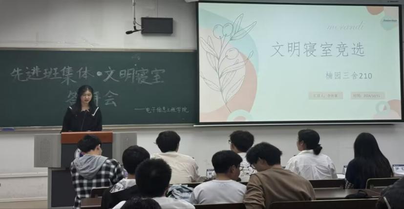 10月11日,我院于38教307教室开展了先进班集体及文明寝室答辩会。活动旨在表彰表现优异的班集体与寝室,树立典型,促进全院学风建设和精神文明的提升。团委书记、学工办主任余琼老师以及团委学生会主席团成员受邀出席。
