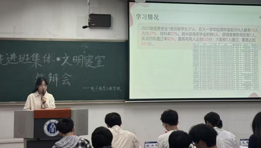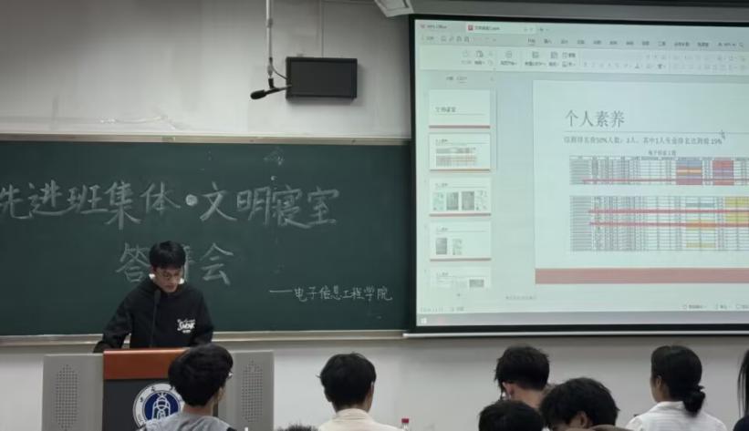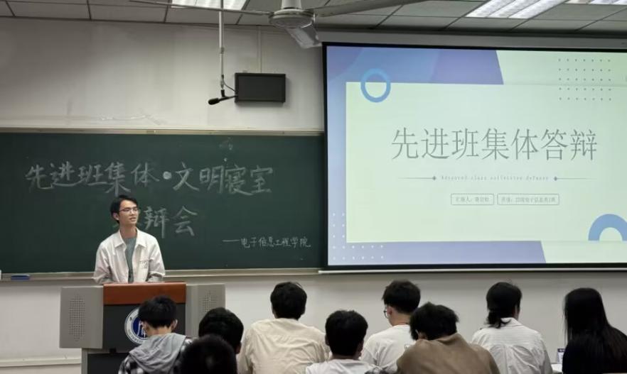 在进行先进班集体答辩过程中,参赛班级逐一展示了各自的学习情况与班风建设,分享了课外拓展活动,并展现了在科技创新与文化活动中的亮点。各班级陈述流畅,材料详实,充分展现了集体的凝聚力和进取精神。