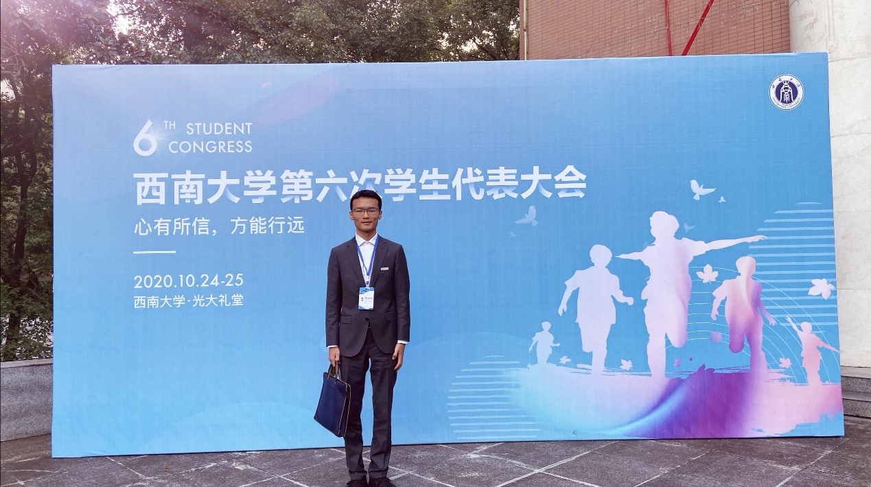 陈涛作为学生代表参加西南大学第六次学生代表大会