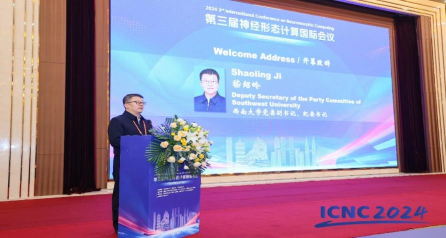 西南大学党委副书记、纪委书记嵇绍岭致开幕辞,他代表西南大学,表达了对与会者的欢迎和对会议的希冀,希望会议能够推动神经形态计算的创新性发展和成果转化,加强彼此之间的学术沟通与交流、促进合作创新。