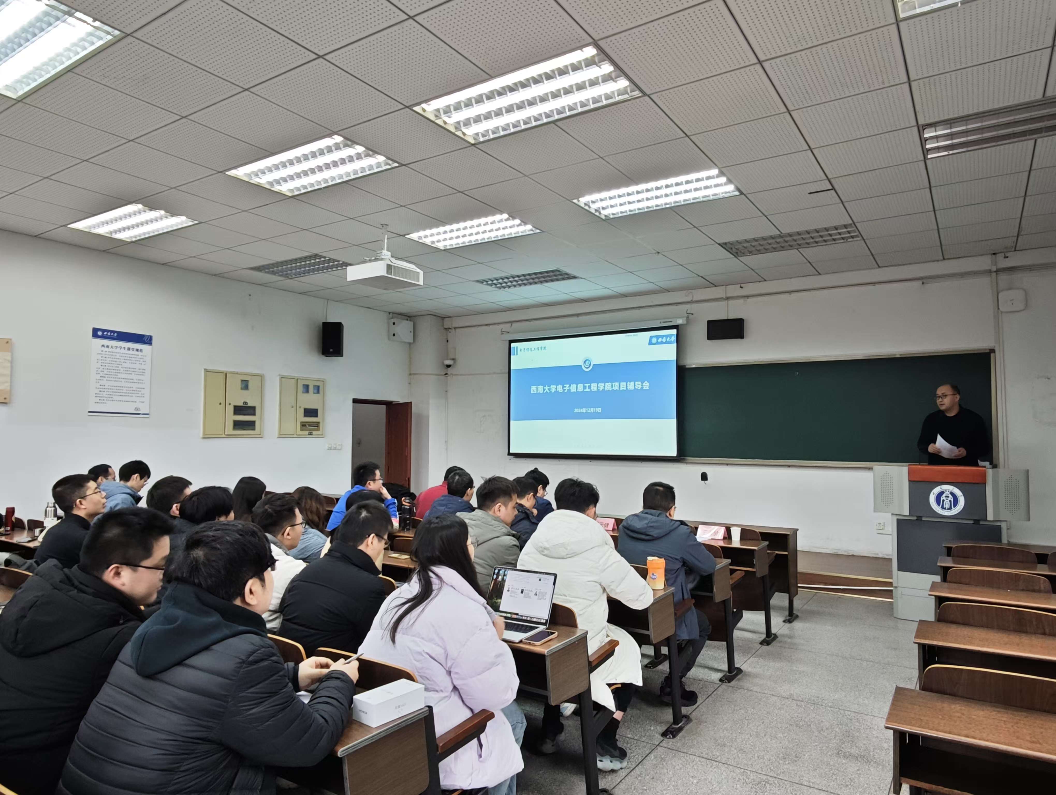 为切实做好2025年国家自然科学基金申报工作,加强有组织科研,提高基金申报书质量,2024年12月19日下午,在38楼502教室,电信学院召开自科基金申报专题辅导会。学院拟申报2025年国家自然科学基金的教师、博士后、博士研究生等共计40余人参加报告会,会议由副院长解宜原教授主持。