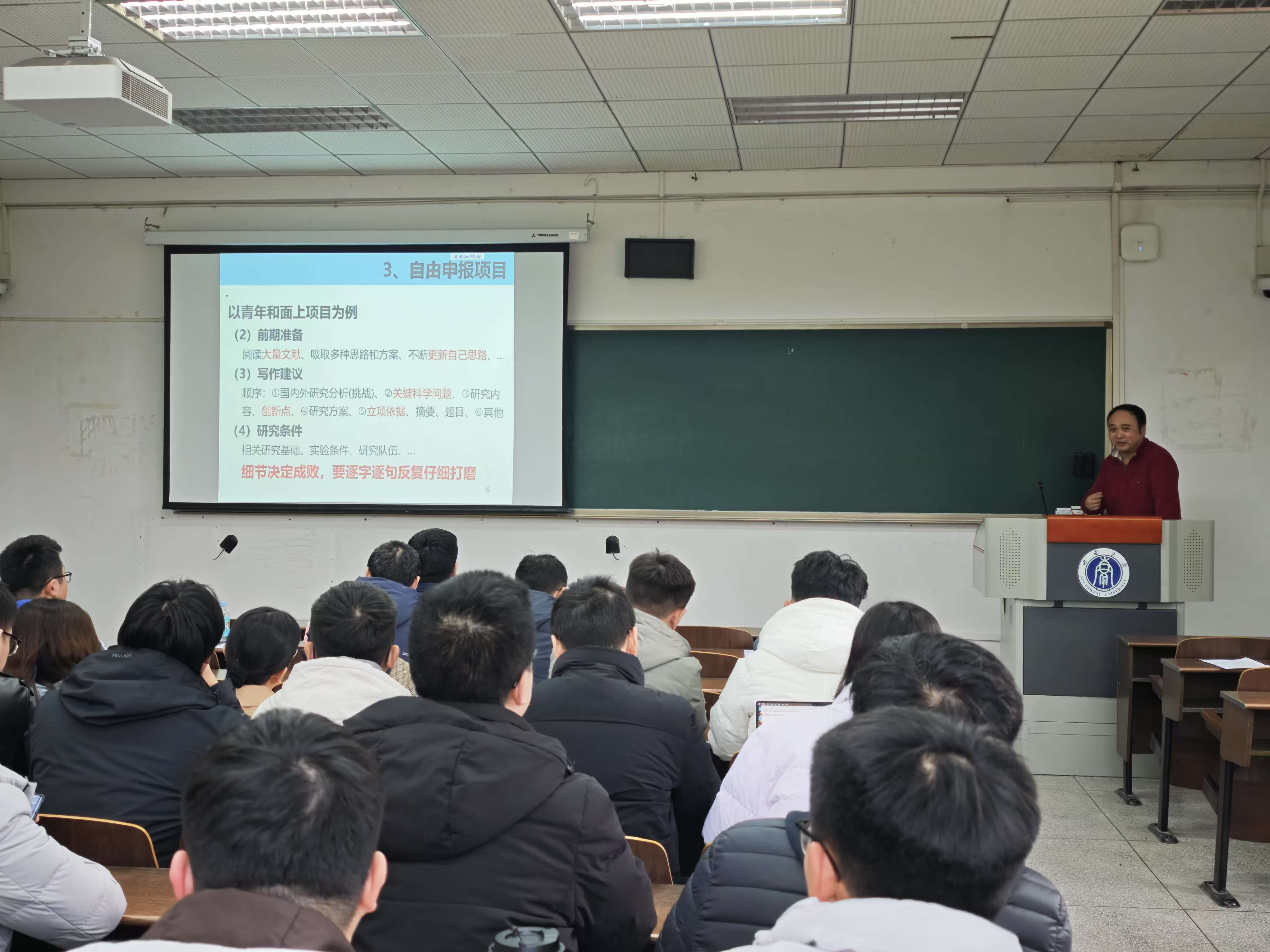 在随后的基金申报经验交流环节,重庆大学发展规划处副处长、国家“万人计划”科技创新领军人才贾云健教授以其独特的视角和丰富的经验,逐一对老师们的自科基金申报书进行深入梳理,精准指导如何突显研究亮点和凝练创新点,提升申报书质量。