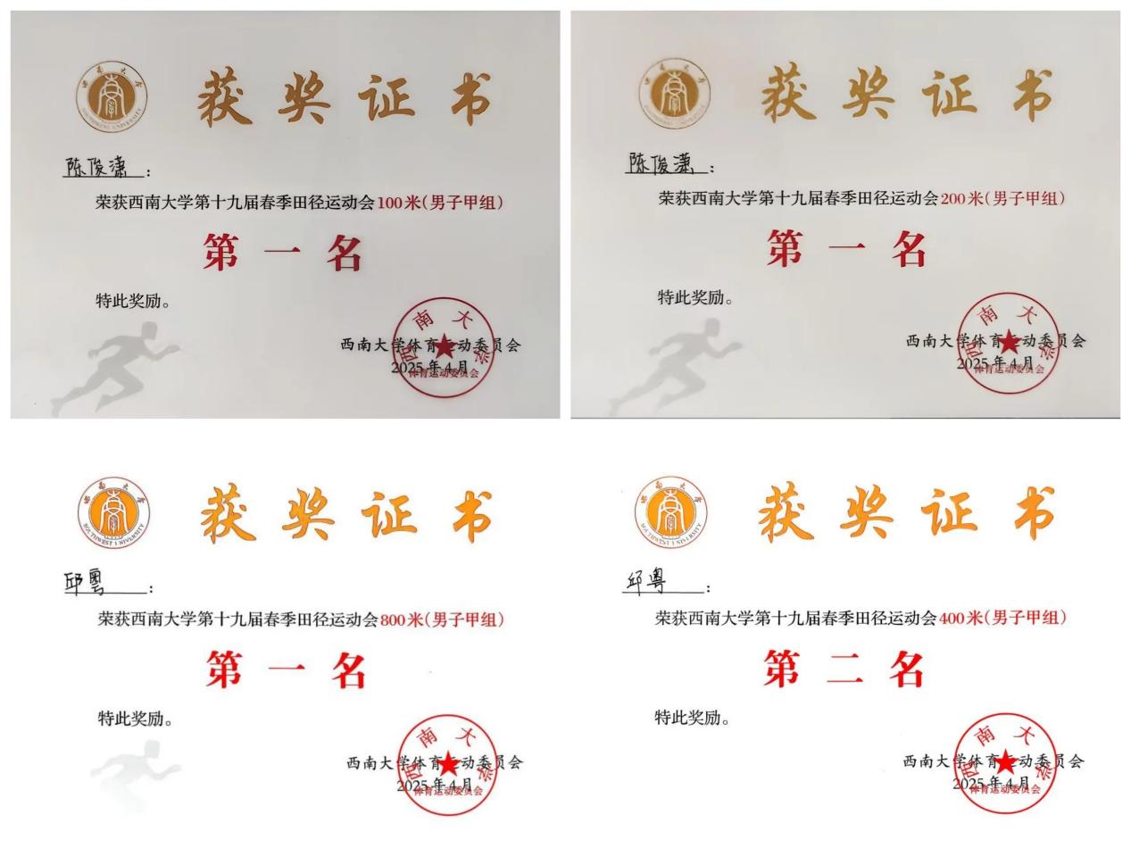 春意盎然,生机勃发。4月10日至11日,西南大学第十九届春季田径运动会暨体育文化节隆重举行。我院学子在赛场上团结协作、奋勇争先,最终斩获三金一银,获得学生甲组本科生第四名的历史最好成绩,充分展现了电信人的拼搏精神与青春风采。