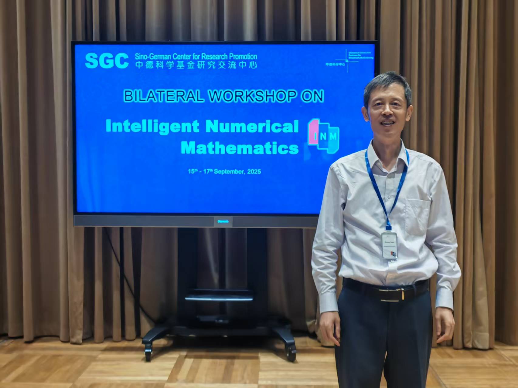 国家自然科学基金委员会中德科学基金研究交流中心(以下简称中德科学中心)于2025年9月15日至17日在北京组织召开“智能数值数学(Intelligent Numerical Mathematics)”中德双边学术研讨会。该会议旨在提升我国在智能数值计算领域的科研创新、技术研发和人才培养,促进中德两国在相关领域的科学合作。我院张远教授通过项目申请获得批准,参加了本次研讨会,并以《Research and Application of Efficient Learning Algorithms for Intelligent Healthcare》为题目做报告。